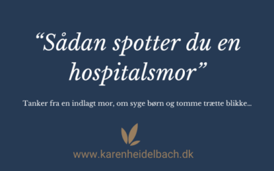 Ring gerne på Mobil 30 98 80 00 eller Skriv til Kontakt@karenheidelbach.dk hvis du vil vide om hvordan du kan være med til at støtte projekt så vi kan tilbyde gratis hjælp og samtaleforløb til forældre og pårørende til alvorligt syge børn.