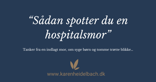 En hospitalsindlæggelse kræver flere kræfter og resurser end I kan forestille jer. Man skal navigere rundt i information, ny viden om sygdom og behandling alt imens man er Piv bange og overladt til egne resurser til at håndtere de stærke og svære følelser. Man bliver rykket af ens comfortzone, som en gulerod der bliver rykket op af jorden og plantet et nyt sted hvor, der forventes at man tilpasser sig på og finder fodfæste ingen tid. Alt umiddelbar kontrol og indflydelse på egen hverdag og liv bliver pludselig taget fra en. Du er ikke længere herre over de mest basale ting som om, hvornår du vil fx tage bad, spise sove – din hjerne kværner konstant for at bebrejde data, følelser, huske næste behandling, imens nok det vigtigste af alt – nemlig, at elske og passe på dit barn. Trøste, opmuntrer, opdrage, lære, lege og støtte dens udvikling og nære for de helt basale behov for pleje og omsorg. Man er pludselig opgraderet fra intern madforsyning og levering af underholdning til fremtidsforsker, advokat, bisidder og socialrådgiver funktion you name it…